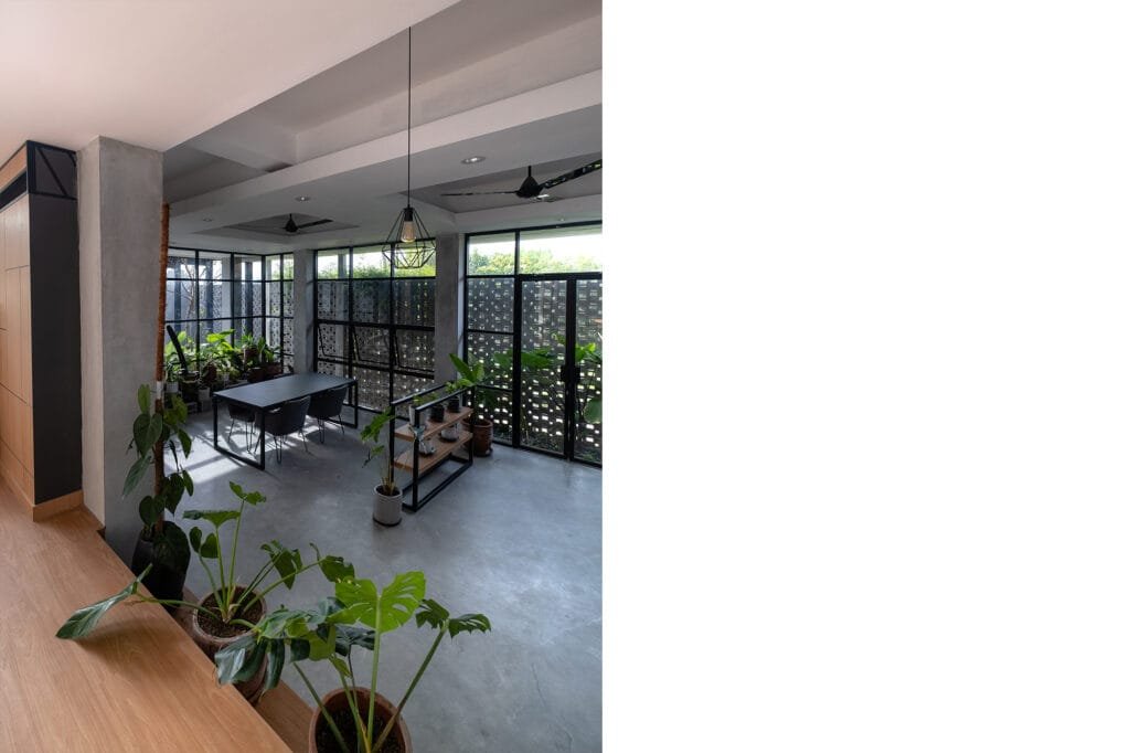 Desain tata letak diciptakan sebagai zona kerja kolaboratif dan memaksimalkan efisiensi ruang tanpa mengorbangkan ruang-ruang pribadi. Menciptakan tempat kerja yang produktif dalam ruang dalam, dapat meningkatkan kenyamanan dan profitabilitas kantor.